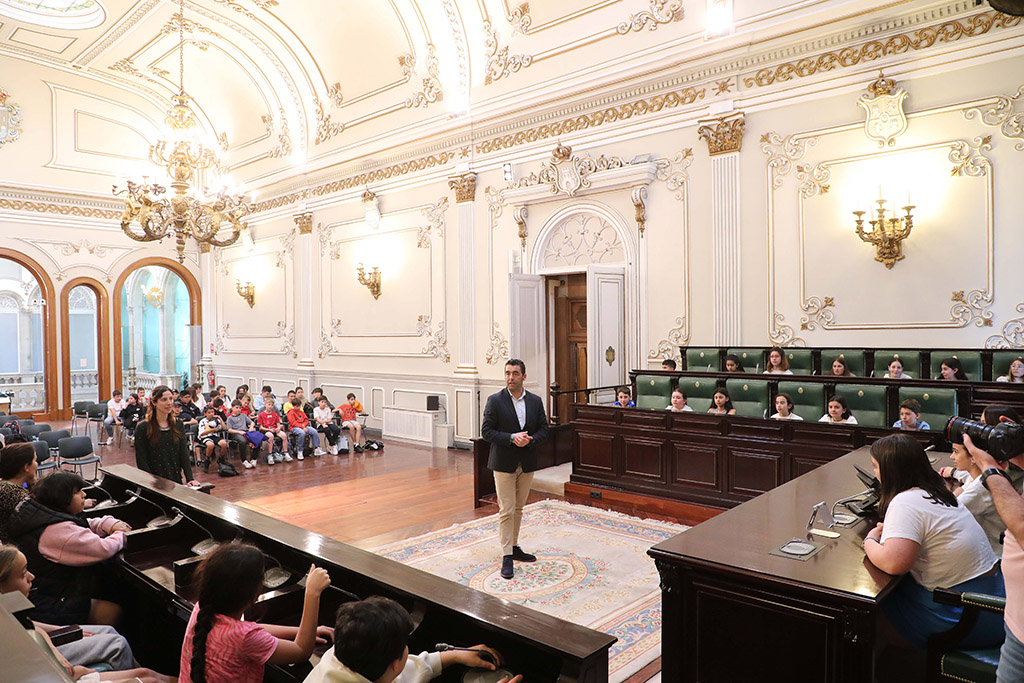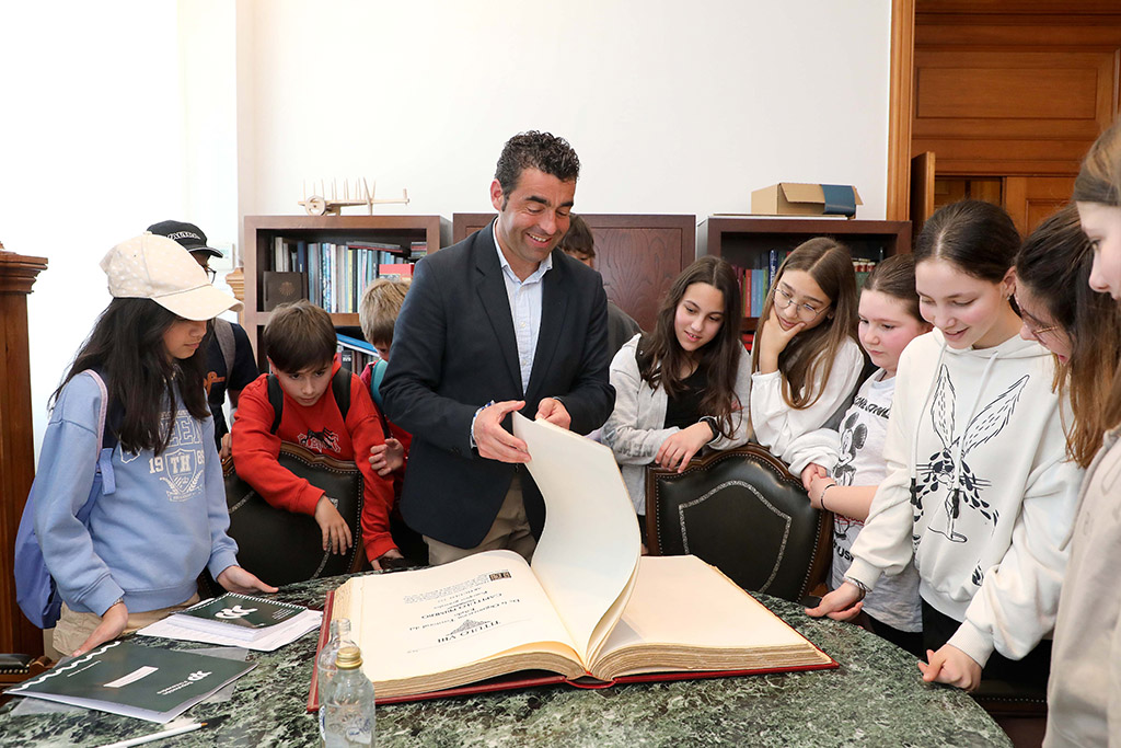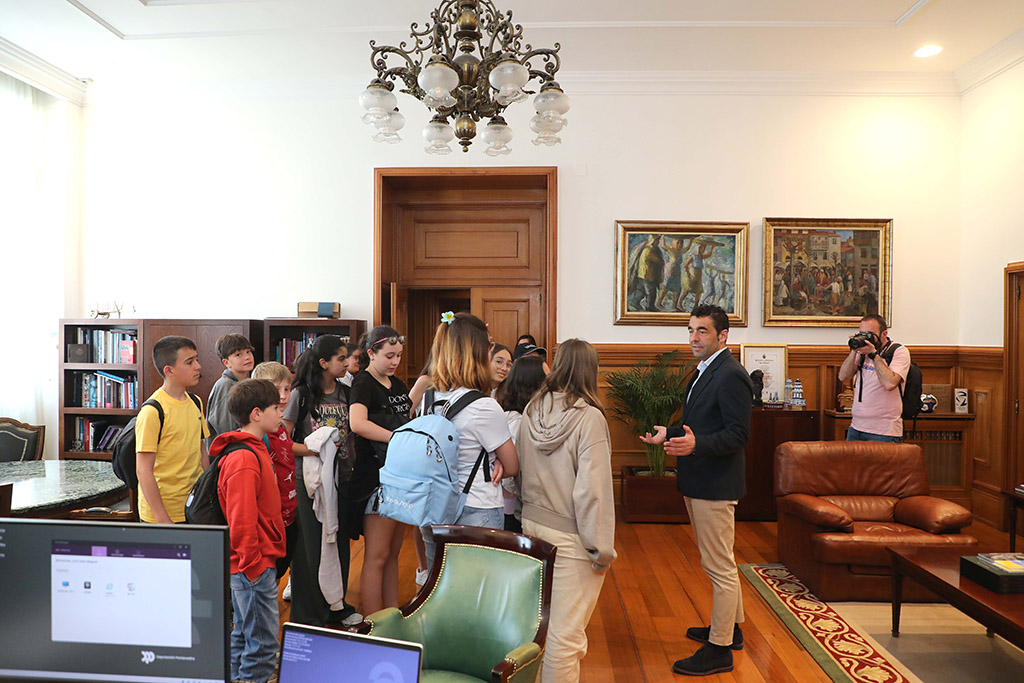 O presidente da Deputación de Pontevedra, Luis López, compartiu este martes curiosidades sobre o organismo provincial co alumnado de sexto de Educación primaria do CEIP Xesús Golmar de Lalín. Os estudantes visitaron o Museo de Pontevedra e o Pazo provincial, onde foron recibidos polo presidente para coñecer os recunchos deste emblemático inmoble y moitas curiosidades sobre as funcións da Deputación.