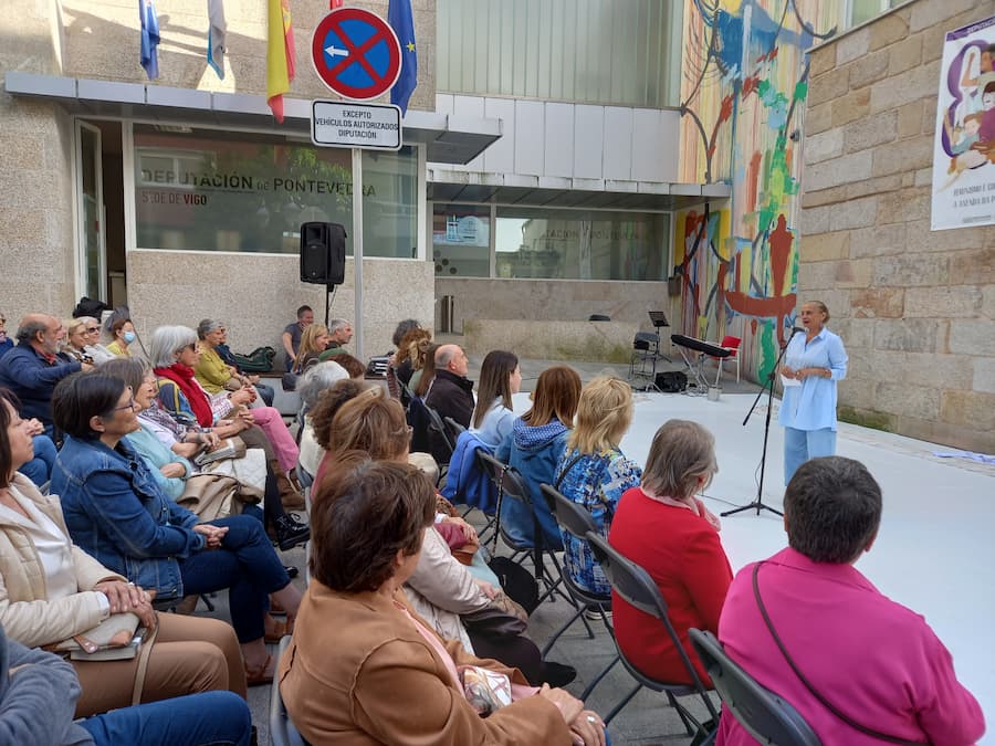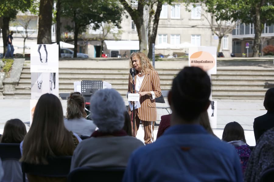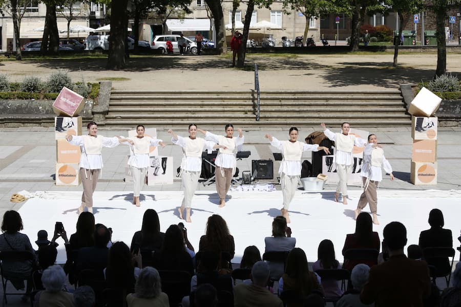 A rúa Chao do Casco Vello vigués encheuse esta tarde de son e danza ante numeroso público que non quixo perder o espectáculo ao que asistiron a presidenta provincial, Carmela Silva e o Cónsul Xeral de Arxentina, Horacio Martín Doval, que desfrutaron das pezas que cruzaron fronteiras e incluso o propio Atlántico a través dos corpos das e dos artistas. Carmela Silva, que invitou ao público "a bailar cada día para ser felices", lembrou que o obxectivo destas accións é "crear redes entre dúas culturas que tanto se aman e teñen en común". A presidenta fixo a lembranza de tantas galegas e galegos "que tan preto de aquí, no Porto de Vigo, embarcaban para Arxentina, un país que nos acolleu, ao que levamos as nosas danzas e onde aprendemos as súas". "Nós, dixo a presidenta provincial, somos de construír pontes de cultura e pontes de afectos para non esquecer unha historia que tan vinculada está a Arxentina. Esta é a mellor forma de celebralo".