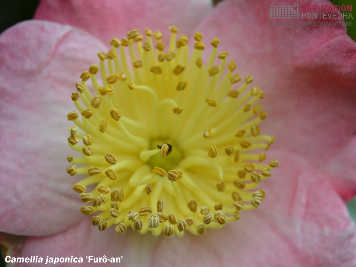 Flor: simples, duns 9 cm de diámetro, de cor rosa clara, máis intensa cara ao bordo, con 5 a 6 pétalos grandes e redondeados e numerosos estames no centro da flor
