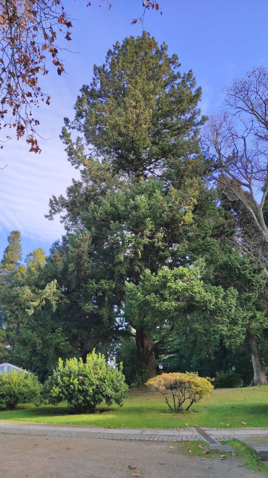 Os exemplares desta especie do castelo de Soutomaior, de fermosa forma, posúen unhas dimensións colosais. Os troncos, con perímetros basais superiores aos cinco metros, están revestidos por unha densa casca de considerable espesor, semellante á cortiza dunha sobreira, e permanecen rectos e indivisos ata a cima, situada a máis de trinta e tres metros de altura sobre o chan.