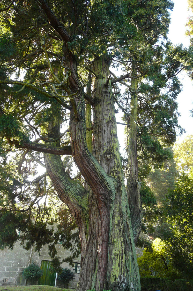Aínda que o pazo é do século XII, esta árbore plantouse cando se deseñou o xardín, na década de 1860, e tan preto da casa que agora semella ser o gardián perpetuo do pazo.