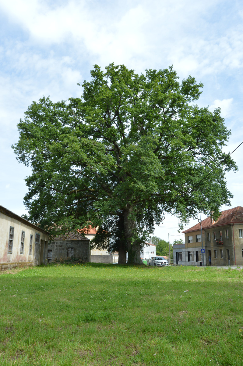 Está situado ao bordo dunha estrada, nunha explanada de terra á entrada dun alpendre.