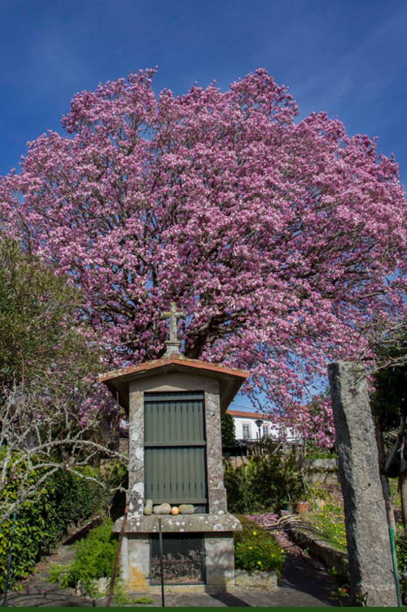 Atópase na estrada que une O Rosal con A Guarda, en San Miguel de Tabagón. Destaca a súa copa florida incluso desde a outra ribeira do río Miño (Valença do Minho).