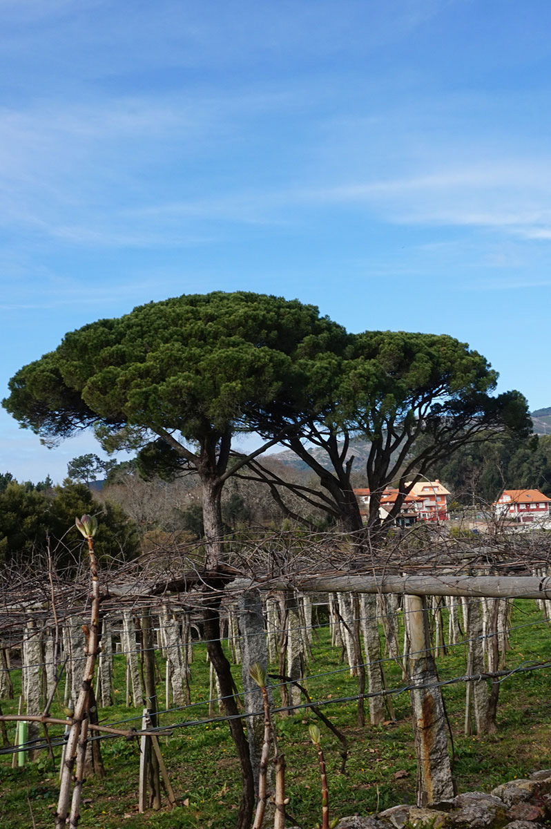 No século XII intensificouse o cultivo da vide no Baixo Miño e os monxes descubriron a gran capacidade que tiñan estas terras do val do Rosal para a produción de viño. En 1835, coa desamortización de Mendizábal, pasou a ser propiedade privada e desde 1898 pertence á familia Vicente; os piñeiros xa estaban no terreo cando foi adquirido. Na actualidade dedícanse dúas ha a viñedo e o lugar dispón dunha recoñecida bodega. Empregan a silueta dos dous piñeiros mansos como sinal de identidade dos seus produtos, constituíndo a súa imaxe corporativa.