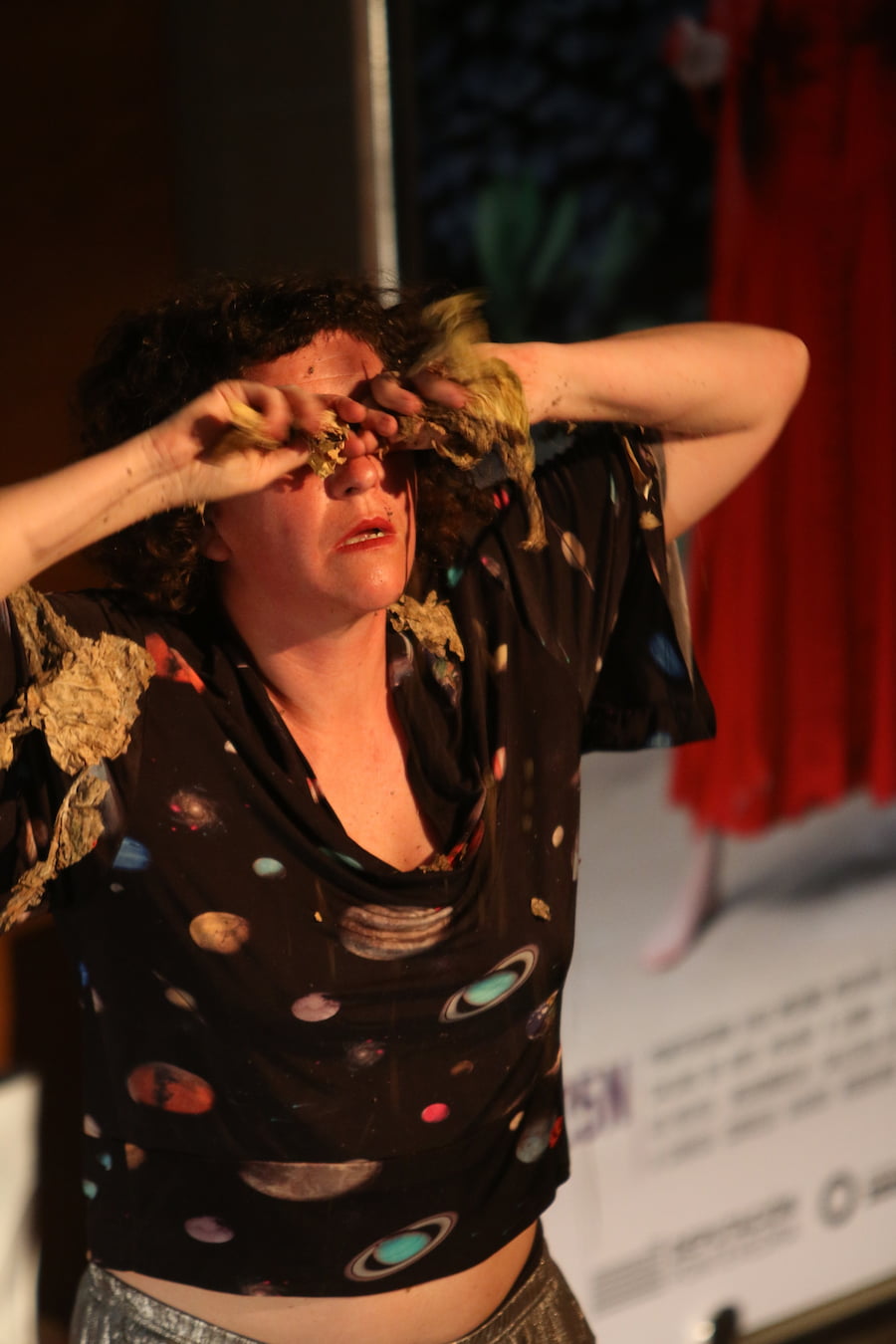 Logo desprendeuse da roupa de astronauta e deitouse no chan interactuando cos caracois. Para que o público puidera ver estes animais a gaoila contaba cunha cámara que transmitía en directo o movemento dos mesmos nunha pantalla situada no fondo do escenario. A artista interactuou co público a través de elementos como verzas, follas secas e lume lanzando reflexións sobre o amor e a liberdade. Ademais, unha vez finalizada a acción xuntas e xuntos analizaron a peza nun coloquio no que se puxo en valor a importancia da danza á hora de reivindicar o corpo das mulleres e darlle importancia alén da sexualización.
