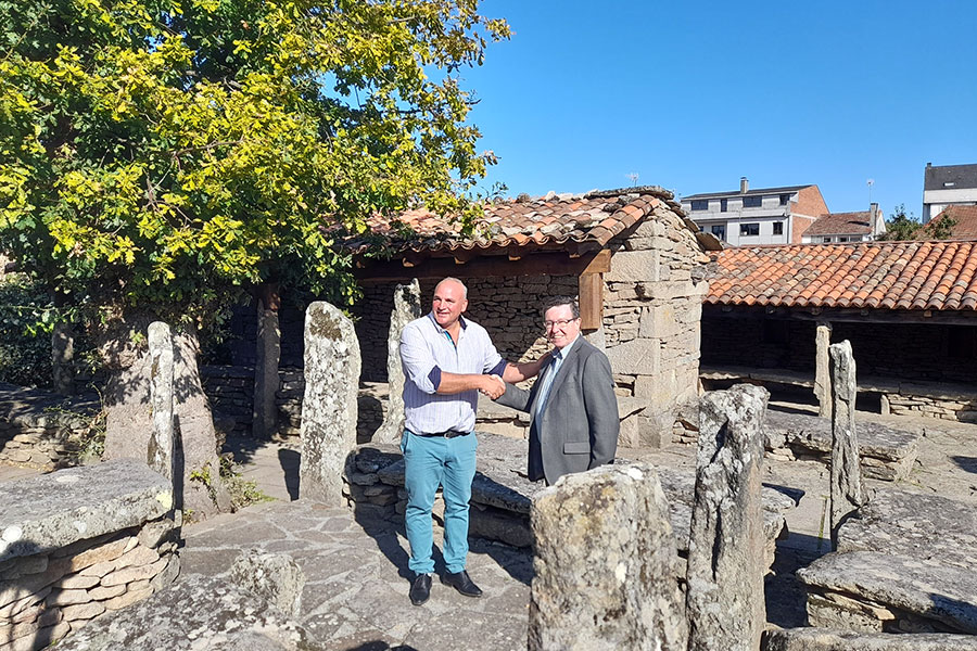 “Agolada está de en hora boa, a comarca do Deza está de en hora boa e a provincia de Pontevedra está de en hora boa”, con estas palabras celebrou o deputado Carlos Font a cesión ao Concello agoladés dos 47 pendellos propiedade da Deputación á institución municipal. O acordo, fraguado hoxe cunha aperta de mans no interior do singular recinto histórico-artístico, será referendado administrativamente coa aprobación do convenio no Pleno provincial do próximo día 30. O anuncio realizouse durante a visita que o deputado e o alcalde, Luís Calvo, realizaron ao conxunto.