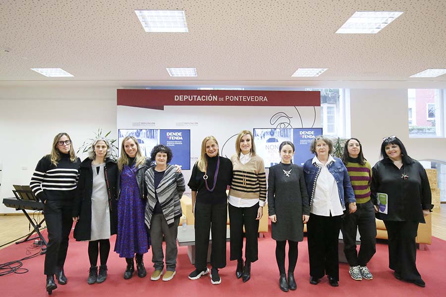 A pregunta “Onde estamos as mulleres na arte?” foi esta tarde o punto de partida para que oito expertas reflexionasen da man da Deputación sobre a brecha de xénero que segue a marcar este eido cultural e supuxo todo un berro reivindicativo e de denuncia da situación de desigualdade que aínda sofren as mulleres na arte, onde a pesar de constituír xa un 70% do alumnado nas facultades de Belas Artes seguen “sen ocupar posteriormente o espazo profesional que merecen”. A sede provincial en Vigo acolleu esta xornada coa presenza da presidenta provincial Carmela Silva e de relevantes mulleres da arte como Sara Donoso, Encarna Lago, Anxela Caramés, Asunta Rodríguez, Almudena Fernández Fariña,  Mar Caldas, Amaya González Reyes e Xisela Franco. A xornada serviu, amais, de colofón para a mostra Dende a Fenda. Prácticas artísticas e feministas en Galicia”, que finalizará este vindeiro domingo despois de dous meses expoñendo a obra de dez das máis destacadas artistas galegas. A cita contou coa asistencia de numerosas asociacións da cultura da cidade e coa actuación de música e danza do Ensamble Verxel.