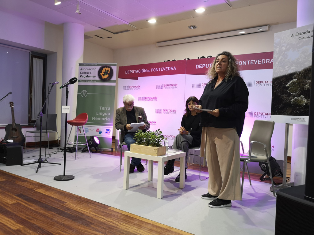 Na presentación, a autora Clara Iglesias, acompañada polos músicos Anxo Fernández e Gustavo Brea e o contacontos Marcos Borrageros, fixo un percorrido pola diferencia teórica entre contos, mitos e lendas, e puxo sobre a mesa varios temas, a ‘Compaña’, os mouros, as mulleres, os demos, as meigas, e as lavandeiras da noite, sempre relacionando estes elementos máxicos con lugares e construcións do Concello da Estrada.