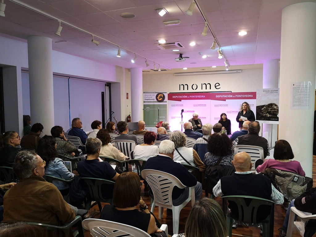 O MoME da Estrada acolleu hoxe a presentación do libro ‘A Estrada encantada. Contos, mitos e lendas’ da escritora Clara Iglesias Cortizos e a Asociación Cultural Vagalumes. A publicación, editada polo servizo de Patrimonio Documental e Bibliográfico da Deputación de Pontevedra, supón –segundo a deputada María Ortega- “unha ferramenta”  para coñecer historias que de maneira tradicional foi transmitindo a xente maior  pero que a día de hoxe corren risco de non seguir transmitíndose pola desaparición destas persoas”.