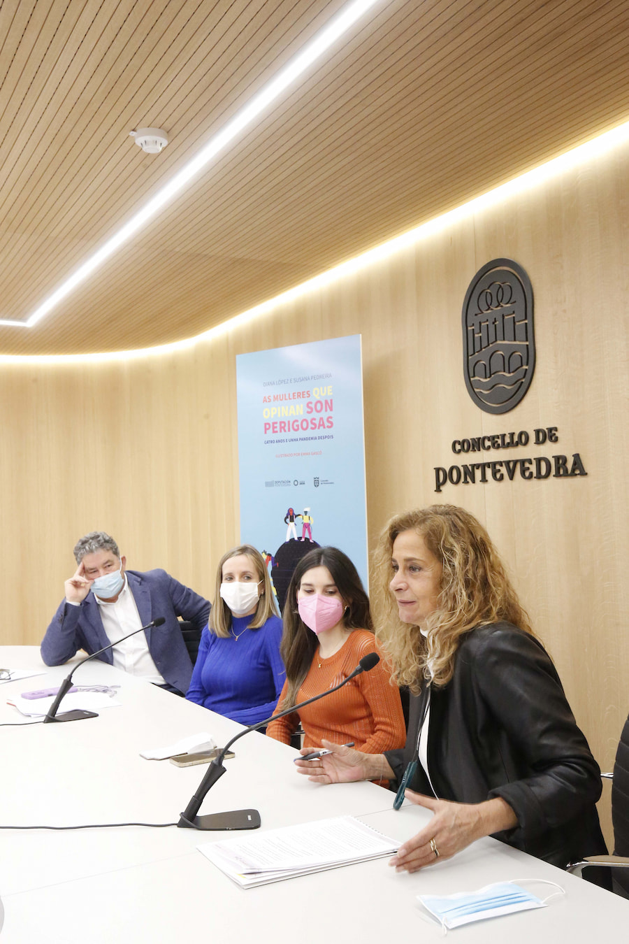 “As mulleres que opinan son perigosas. Catro anos e unha pandemia” é o título do libro co que as xornalistas Diana López Varela e Susana Pedreira botan a vista atrás ao nacemento do foro que con ese nome promoven en Pontevedra desde o 2018. A obra pasa revista a aquela primeira edición, que supuxo todo un aldabonazo nos medios de comunicación de todo o Estado, a través das palabras das súas relatoras, pero desde o presente e coa perspectiva que dan os catro anos de celebración, con pandemia de por medio. O libro, que será presentado o vindeiro 29 de marzo no Pazo Provincial (19 horas), converte as quince charlas desa primeira edición en crónicas xornalísticas e reflexiona coas súas protagonistas sobre o eco deste evento que, como subliñaron hoxe a presidenta Carmela Silva e o alcalde Miguel Anxo Fernández Lores, “ten convertido á cidade e á provincia en referente do feminismo”. Ambos compareceron xunto ás periodistas para anunciar tamén que o foro retomará a presencialidade este ano e celebrarase  no Teatro Principal, no que naceu, cando rematen as súas obras.