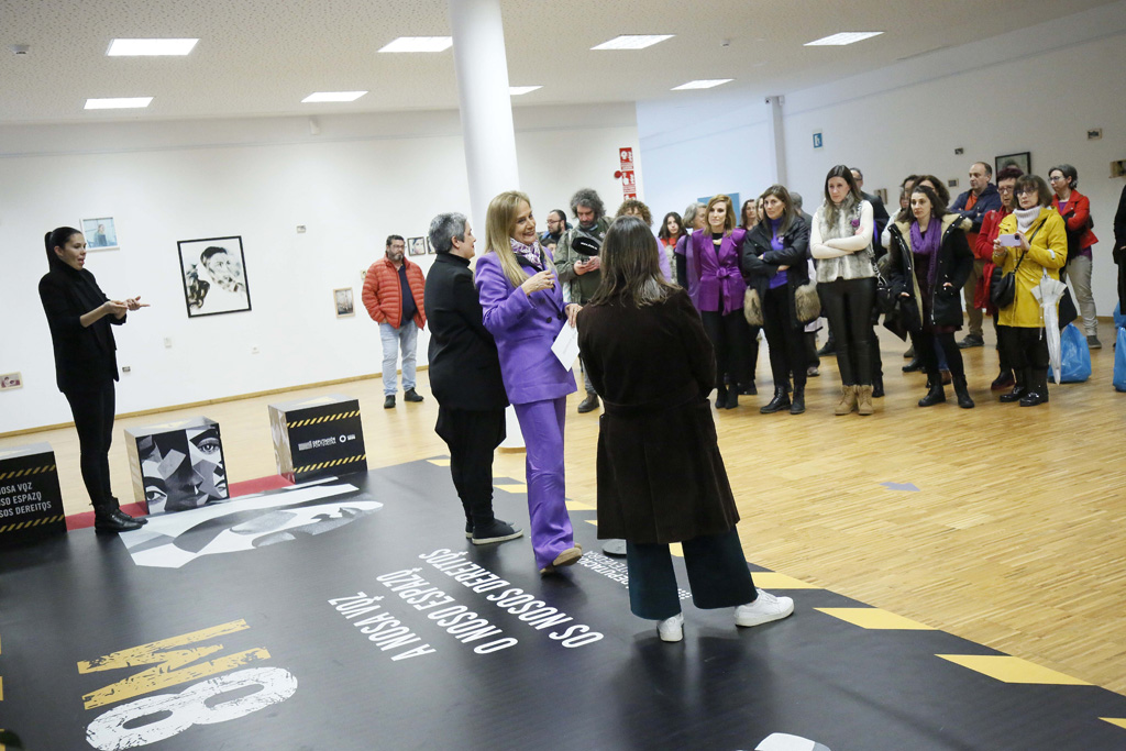 Andrea Mosquera e María Roja percorreron os “2,2 quilómetros de alento” desde o Xulgado de Violencia sobre a muller ata á sede provincial, onde tamén se inauguraron as exposicións de Puri Díaz e Ofelia Cardo