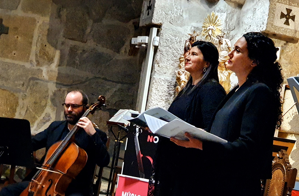 O espectáculo que ofreceu a formación Ars Sacra Ensemble baseouse na interpretación dun ‘Stabat Mater’. Trátase dun dos poemas relixiosos máis musicados ao longo da historia da música, e nel nárrase o sufrimento de María, nai de Xesús, durante a crucifixión. Grazas á súa conversión en peza musical, a música acompaña e expande, de maneira maxistral, a crueza dun momento clave na historia da humanidade. Ars Sacra Ensemble é unha formación que naceu do puro pracer de reencontrarse para facer música. Todas as persoas integrantes deste grupo son galegas e, antes de coincidir de novo en Galicia, fixérono nalgún momento na cidade portuguesa do Porto. Este conxunto está composto por Débora Valuja (clavecinista, de Poio), Fernando Santiago (cello, de Bueu), Sonia Bouzada (mezzosoprano pontevedresa) e Rosana Domínguez (soprano, de Meaño) e a súa especialidade é a interpretación de música sacra antiga.