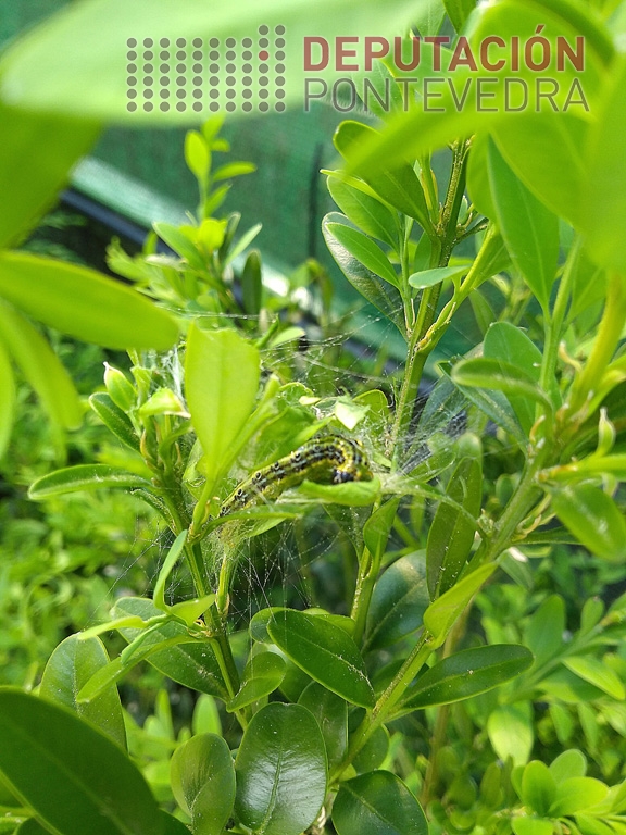 Así mesmo, lembra que nestes momentos as eirugas da bolboreta do buxo están ben desenvolvidas e, onde non se fixeron tratamentos, están a defoliar vorazmente o buxo. Tamén xa se observan crisálides nas sebes non tratadas.