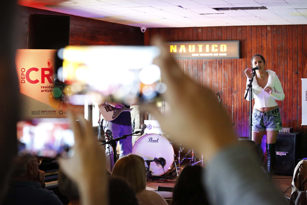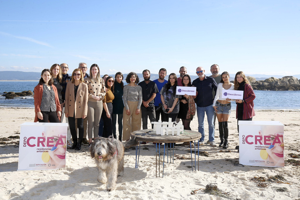 Arte e música puxeron hoxe o broche de ouro á primeira edición do programa “Depocrea”, a residencia artística convocada pola Deputación de Pontevedra que vincula creación e territorio e que tivo como privilexiado escenario o Náutico de San Vicente do Grove. Despois de quince días de intensa actividade artística e colaborativa, Carla Andrade, Pablo Barreiro, Macarena Montesinos, Diego Vites, Yolanda Ríos e Olmo Blanco, os e as seis creadoras que teñen participado neste pioneiro “laboratorio de creación”, amosaron o froito do seu traballo nun acto no que estiveron acompañados pola deputada de Cultura, Victoria Alonso, e o responsable do Náutico, Miguel de la Cierva. A cita estivo amenizada pola música de tres das cantantes mentorizadas no programa provincial “Descúbreas”, Caro, Ane Swan e Sara Casas.