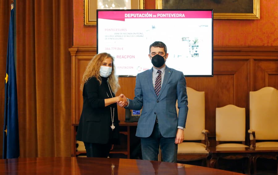 “Esta sinatura é o colofón á traxectoria dos últimos 7 anos da Deputación, que tutela e apoia os concellos pequenos como Pontecesures”. Así de contundente se manifestou o alcalde de Pontecesures, Juan Manuel Vidal, na sinatura coa presidenta da Deputación de Pontevedra, Carmela Silva, do convenio do Plan ReacPon no que Pontecesures acadou financiamento para a reconexión peonil, segura e amable do seu núcleo urbano. As obras están valoradas en 366.779,86 euros, dos que a Deputación achegará 330.101,87 € e o Concello 36.677,99 €.