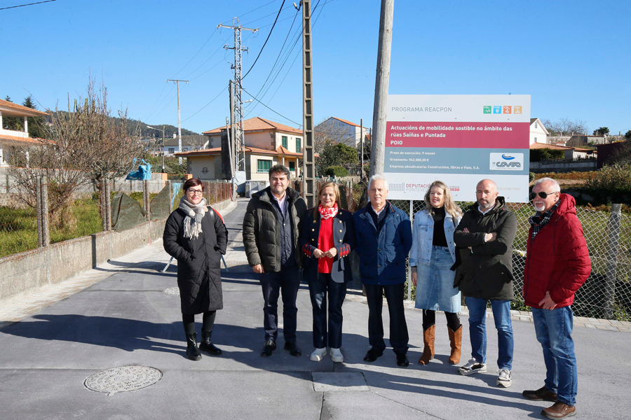 A recuperación de espazo público para as persoas nas rúas Saíñas e Puntada na contorna urbana de Poio será unha realidade grazas ao Plan ReacPon da Deputación, o plan de recursos extraordinarios destinados aos concellos que a institución provincial puxo en marcha para reactivar a economía da provincia. A presidenta Carmela Silva e o alcalde Luciano Sobral asinaron hoxe un convenio para iniciar unha transformadora actuación que supón un investimento de 942.000 €, dos que a Deputación aportará 753.600 euros e o concello os 188.400 restantes. A intervención permitirá impulsar unha actuación de mobilidade sostible e amable que configurará unha contorna urbana renovada máis segura, de maior calidade, accesible e centrada nas persoas.