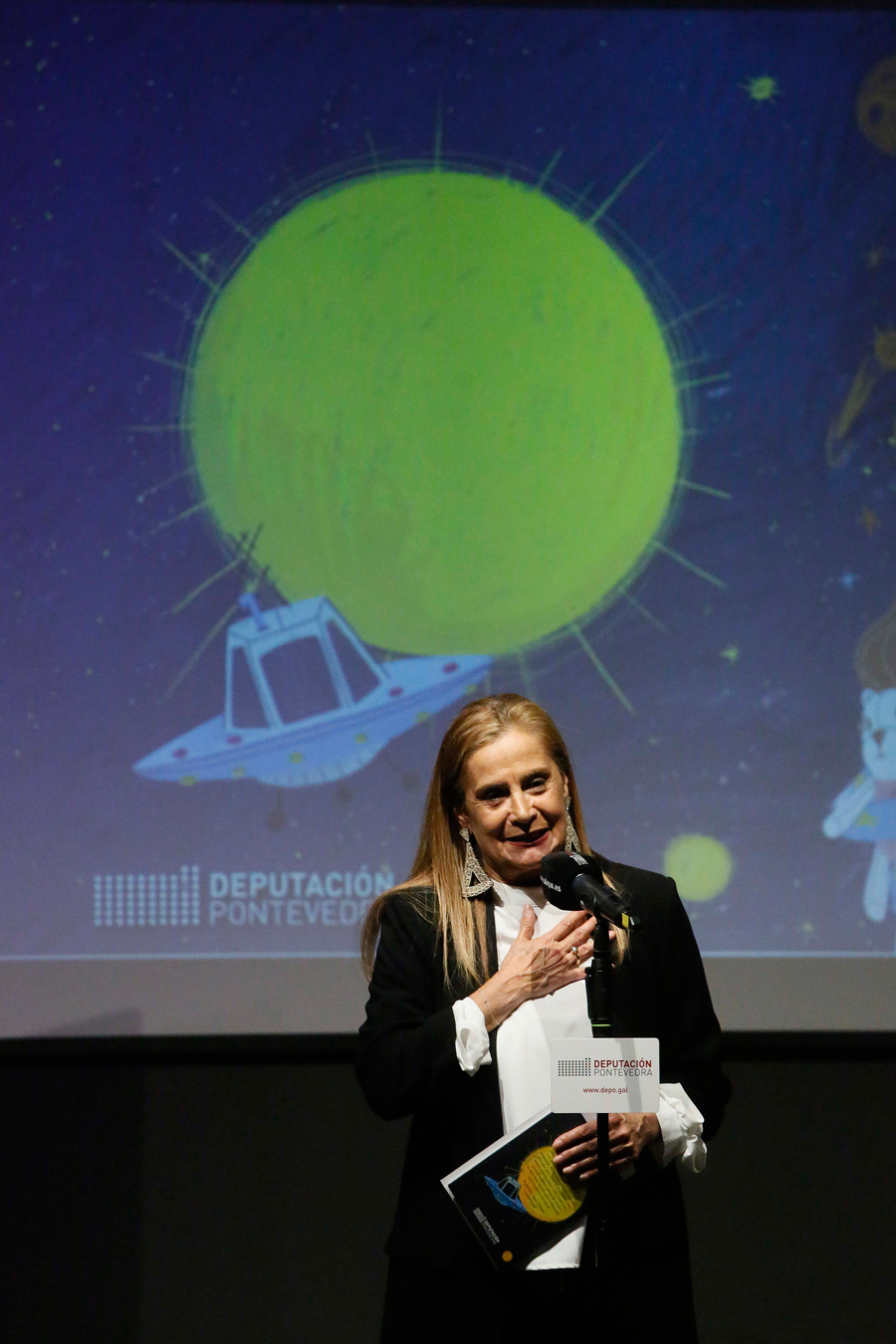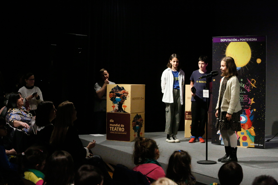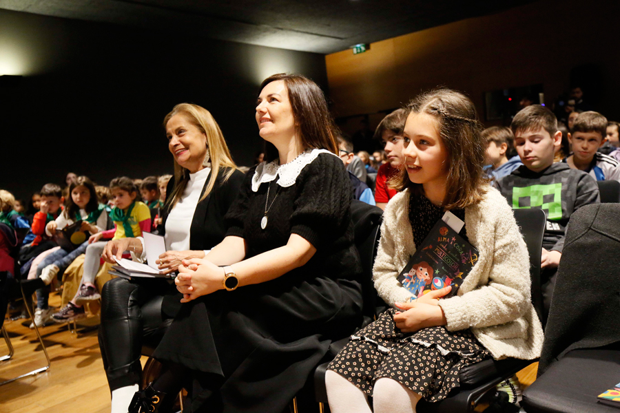 Foi unha marabillosa “viaxe de fantasía”, de grandes emocións e, sobre todo, de moitísimo “talento”. O escenario, o salón de actos do MARCO de Vigo; as protagonistas: a alumna do CEIP Virxe do Rocío Iria Portabales, a escritora Ledicia Costas, e a presidenta provincial, Carmela Silva. E o pano elevouse para unha celebración anticipada do Día Mundial do Teatro cunha proposta da Deputación chea de sorpresas que conxugou “toda unha singladura” ao redor do mundo da cultura. En primeiro lugar, a presentación do libro Alma e Corazón, unha aventura multicolor, da escritora Ledicia Costas e ilustrado por Blanca Millán, inspirado no xoguete Talento, co que a nena Iria Portabales gañou o concurso creativo de xoguetes non sexistas promovido pola institución provincial. Máis de cen alumnas e alumnos deste centro vigués arrouparon hoxe á súa compañeira nun periplo que se pechou co espectáculo “Asdomare”, con Vero Rilo e o acordeonista Santi Cribeiro. “Hoxe é un día para celebrar a cultura -destacou Carmela Silva- que é fundamental, porque temos que vivir e educarnos con ela”.