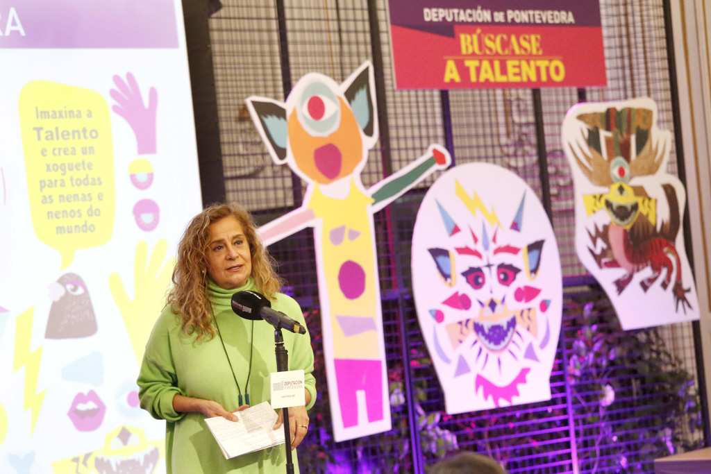 “Síntome orgullosísima da resposta que tivo o concurso, con máis de 1.400 nenas e nenos de 72 centros de 32 concellos que amosa que temos uns centros educativos comprometidos coa educación integral”, destacou Carmela Silva, que puxo en valor a creatividade das nenas e nenos. “O talento é o único que importa nas persoas, é o que vai construíndo sociedade”. “Búscase a Talento”, dirixido a 3º e 4º de primaria, pretendía remarcar que non hai xoguetes, libros ou xogos diferentes para nenas e nenos; só hai xoguetes para xogar, crear e imaxinar un mundo libre de estereotipos e roles de xénero. Deste xeito as nenas e nenos participantes tiñan que crear a “Talento”, un personaxe feliz, libre, intelixente e con moita creatividade, cunha serie de materiais enviados aos centros educativos pola institución provincial.