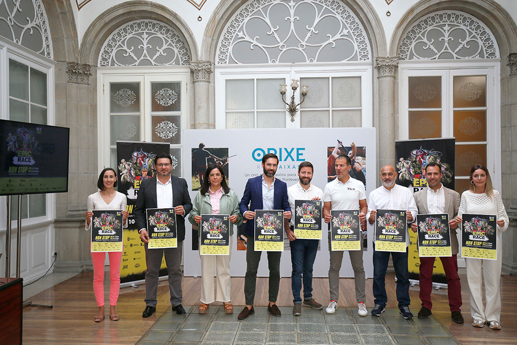 O Pazo provincial da Deputación acolleu hoxe a presentación da sétima edición da Epic Race Pontevedra, a proba de aventura de mountain bike que este ano desafiará as persoas participantes a percorrer un total de ata 300 km de montes da provincia durante esta fin de semana, os días 10 e 11 de xuño. Esta proba de ultrarresistencia sobre bicicleta todoterreo, a máis prestixiosa de Galicia na súa modalidade, está incluída no programa de patrocinios de eventos deportivos singulares da institución provincial, “Depo Promo”, onde acadou unha axuda de 12.000 €. Á presentación asistiron o deputado e a deputada en funcións Gorka Gómez e Ana Laura Iglesias, o director técnico de Global DXT, Josevi Cimadevila, e os alcaldes e alcaldesas en funcións de Meaño (Carlos Viéitez), Cambados (Samuel Lago) e Meis (Marta Giráldez), así como os concelleiros de deportes en funcións de Pontevedra (Tino Fernández) e Caldas (Jacobo Pérez).