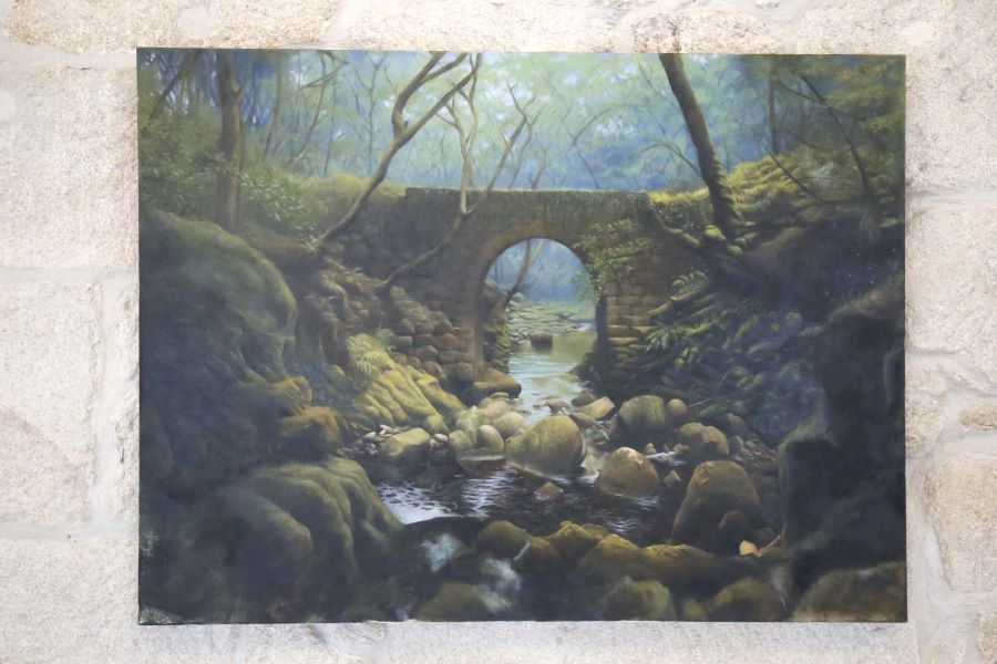 Finalmente, ‘A ponte do Alén’, de Julia Gil Ordóñez (Rianxo) foi a última peza seleccionada e galardoada cunha das bolsas de 7.500 euros do Museo de Pontevedra. A creación é un óleo sobre lenzo que pretende representar o ambiente máxico de Galicia, “o aire de misticismo que rodea os montes e os ríos cando a luz do día xa comeza a esmorecer”. Gil elixiu para elo unha ponte no medio dunha fraga na que se xunta a auga portadora de vida, a natureza onde se agochan lendas e a pedra firme que as une. En concreto, representa unha ponte no percorrido do río Alén, en Covelo (Pontevedra).