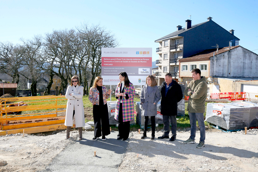 A transformación total do centro urbano de Soutelo de Montes para converterse nun espazo accesible e máis centrado nas persoas será unha realidade en abril grazas aos recursos da Deputación de Pontevedra. A presidenta, Carmela Silva, visitou acompañada da alcaldesa de Forcarei, Verónica Pichel, as obras financiadas con preto de 440.000 € do Plan Concellos –que inclúen a redacción do proxecto e o total da execución da obra– que están a permitir mellorar a mobilidade peonil ata en catro rúas situadas na contorna do Parque Venezuela e o centro de saúde de Soutelo. Trátase “da obra de maior envergadura en canto á transformación do espazo público en Forcarei, que beneficiará a máis de 1.000 persoas, entre veciñanza e persoas que transitan por esa zona para acudir aos servizos públicos que nela se prestan”, sinalou a presidenta.