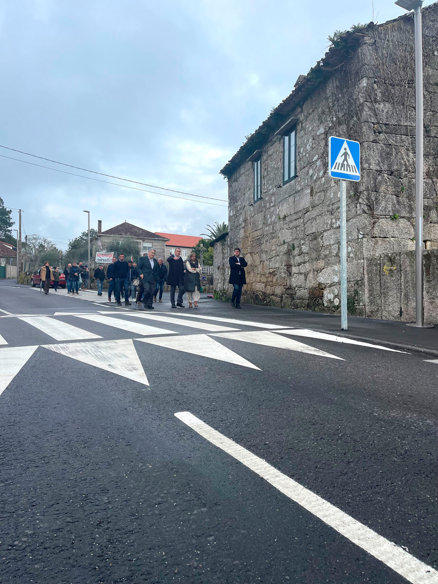 A parroquia de Ribadelouro, en Tui, celebrou este mércores por todo o alto a total transformación acadada coa actuación desenvolvida na estrada provincial que cruza o pobo que, de ser un viario que invadía o epicentro desta zona sen conceder espazo para a veciñanza, pasou a converterse nunha zona amable, sostible e segura para as persoas da man da Deputación e do Concello. A mellora efectuada na EP-2502 Cerquido-Ribadelouro ao seu paso pola parroquia deu resposta, como subliñaron hoxe a presidenta provincial Carmela Silva e o alcalde Enrique Cabaleiro, “a unha demanda histórica da veciñanza”. De feito, o acto de apertura do viario congregou a numerosos veciños e veciñas e representantes das asociacións e da Comunidade de Montes da parroquia.