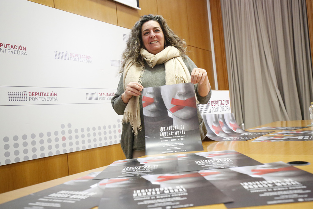 A deputada de Memoria Histórica María Ortega presentou esta mañá a iniciativa. Explicou que o obxectivo do departamento é volver abordar a memoria dende unha perspectiva de xénero, poñendo o foco nas mulleres, “xa que boa parte delas eran para o réxime “individuas de dudosa moral”, tal como se recolle nas misóxinas sentenzas franquistas, por iso escollemos ese nome para as xornadas”.