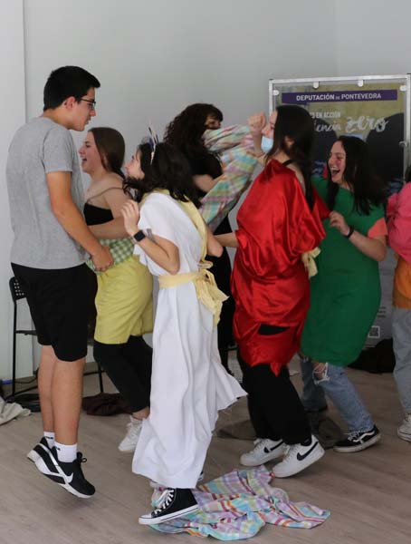 O programa da Deputación levou á Casa da Cultura das Neves unha performance na que a rapazada actuou, bailou, creou vestiarios e colgou unha peculiar pancarta