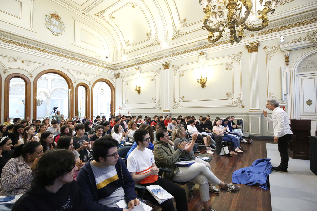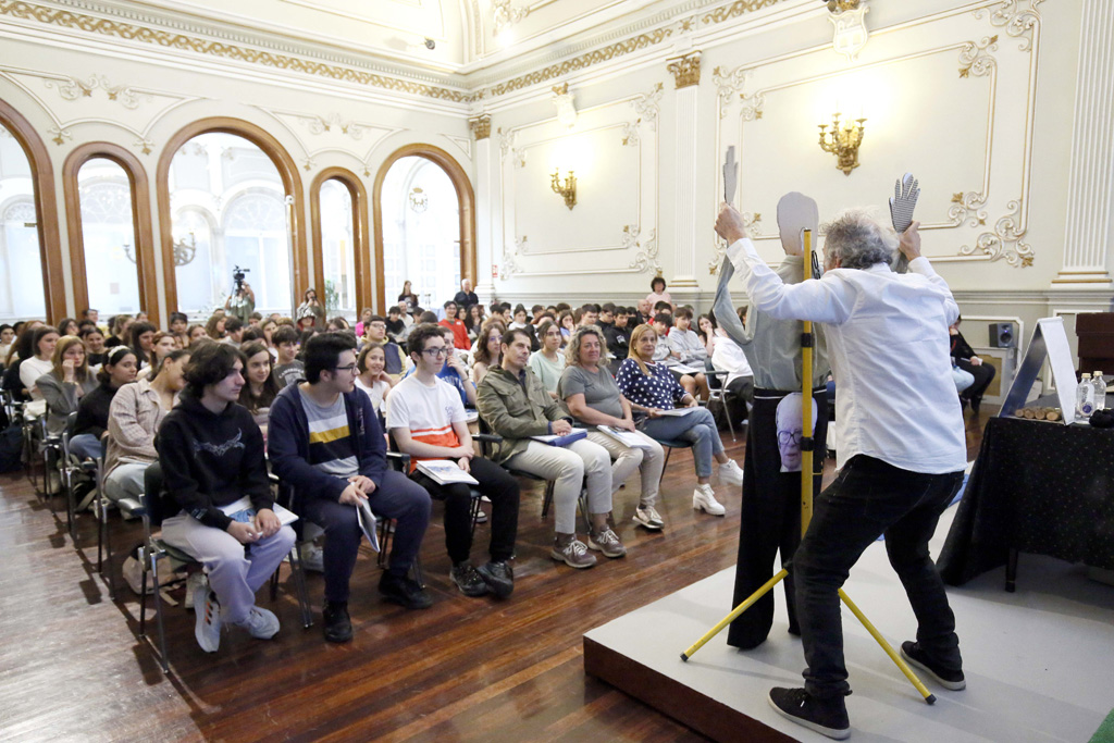 O Pazo Provincial acolleu o espectáculo teatral ‘Un optimista radical’ ao que asistiu alumnado dos CIFP Carlos Oroza e Manuel Antonio e dos IES Frei Martín Sarmiento e Valle Inclán