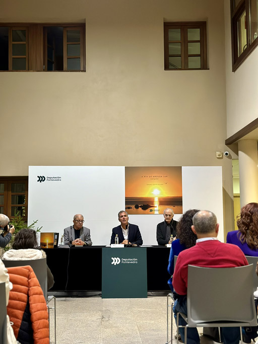 O vicepresidente da Deputación de Pontevedra, Rafa Domínguez, presentou o libro “A ría de Arousa Sur en fotografías” que acaba de editar a institución provincial e conta con imaxes de Germán Cruces e textos do xornalista Fernando Franco e do naturista Estanislao Fernández de la Cigoña. “Trátase dun exemplar único –asegurou o vicepresidente-, un libro ao que volveremos unha e outra vez e inclúe escenas habituais, das paisaxes e vilas de Arousa, ás que estamos moi acostumados pero que, sen embargo, a través das fotografías de Cruces vémolas cuns ollos novos”.