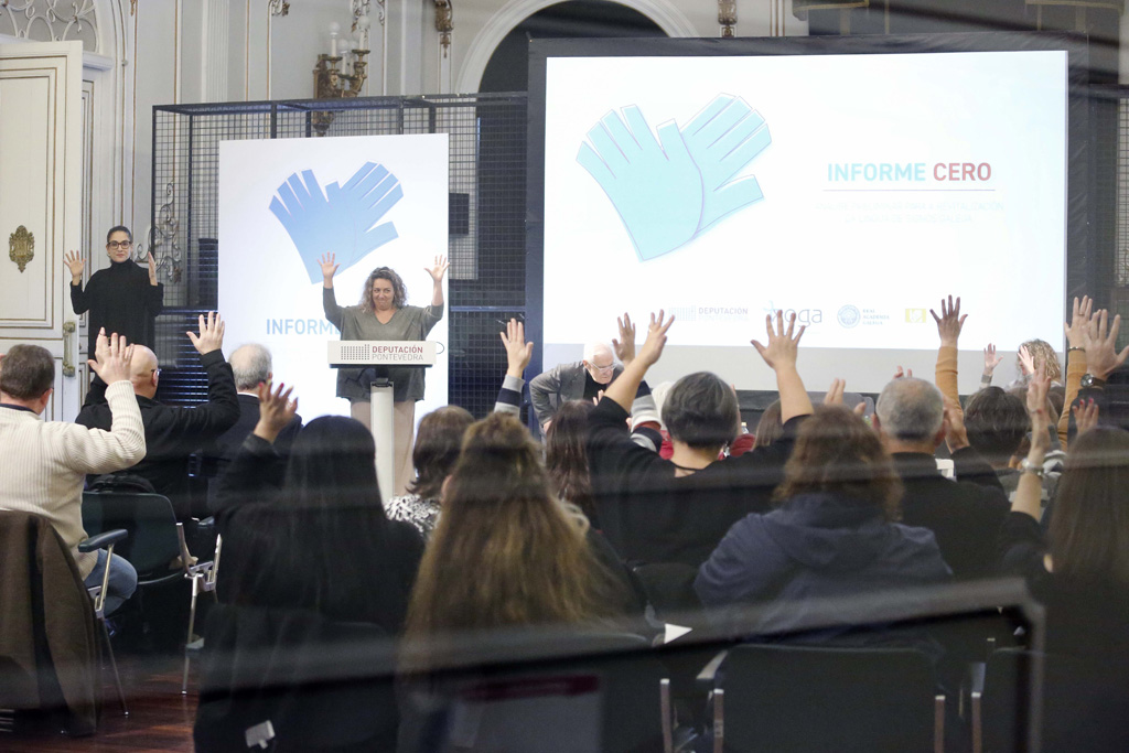 Pola súa banda, a presidenta de Xoga (entidade promotora do ‘Informe Cero’ auspiciado pola Deputación), María Jesús Monterde García, destacou que a revitalización da LSG “é unha cuestión de todas, da educación, da comunidade, das familias. Non podemos ver clases políticas, nin cores, nin chaquetas, nin entidades nin persoas xordas, nin xordocegas... é cuestión de todas. Defendemos a lingua de signos en xeral e a LSG. Isto non vai enfrontamentos. Podemos opinar distinto, pero temos obxectivos de derrubar barreiras”, salientou, destacando que “estamos nunha democracia e temos que velar por dereitos de todas as persoas”.