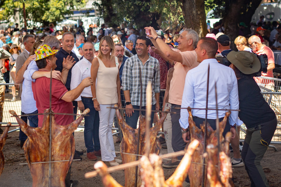 O presidente da Deputación de Pontevedra, Luis López, e a vicepresidenta provincial Marta Fernández-Tapias acudiron este domingo á LIV Festa do Carneiro ao Espeto en Moraña, xunto co presidente da Xunta de Galicia, Alfonso Rueda; o alcalde e a tenente de alcalde de Moraña, José Luis Gómez e María Luisa Piñeiro, e outras autoridades da Xunta, do Goberno local e da Delegación da Xunta en Pontevedra.