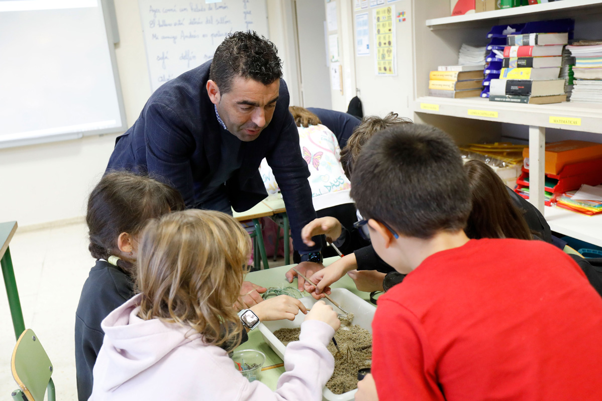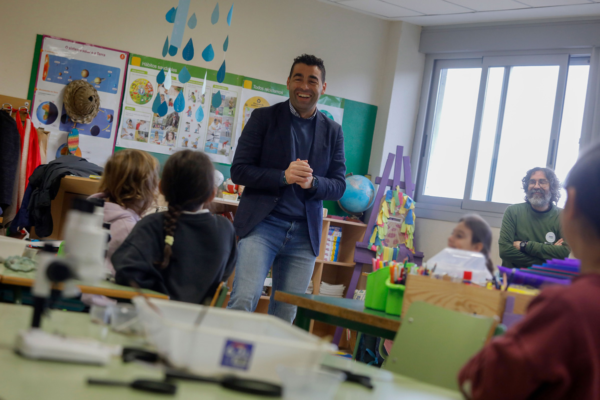 Durante a visita, o presidente comentou coas e cos estudantes de educación primaria deste centro de Gondomar aspectos relacionados coa compostaxe e adiantoulles as actividades que realizarán ao longo do curso académico ao abeiro deste programa. Tamén participou no obradoiro organizado nunha clase do centro educativo para dar a coñecer e divulgar o programa, que contará con charlas para explicar que facer cos residuos, con xogos para descubrir como reducir a contaminación, coa creación de hortas escolares, e con numerosos experimentos para dar a coñecer como funciona un composteiro.