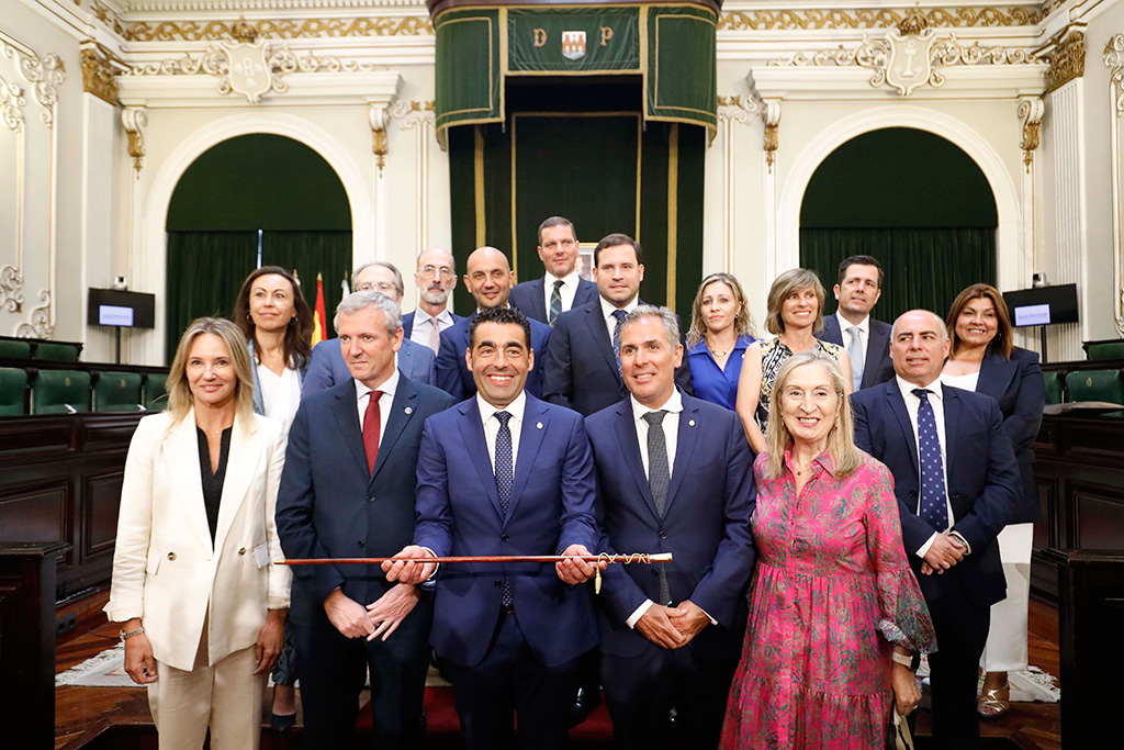 O pontevedrés Rafa Domínguez e a viguesa Marta Fernández-Tapias serán os vicepresidentes da Deputación e o resto do equipo estará integrado por Jorge Cubela, María Ramallo, Alejandro Lorenzo, Roberto Carrero, Nava Castro, José López, Jesús Vázquez Almuíña, Isabel Couselo, Javier Tourís, Marcos Guisasola e Sandra Bastos. “Un equipo de goberno moi potente, con xente con liderado, capacidade de traballo, coñecemento político e cercanía social”, remarcou o presidente que tomou posesión do seu cargo cunha “grandísima honra e co máximo orgullo, pero tamén con absoluta humildade e con toda a responsabilidade por estar á altura do que precisan os 61 concellos da provincia e os 943.000 cidadáns que residen nela”. Os municipios – incidiu- “son a alma desta institución e a eles e por eles dirixiremos toda a nosa acción de goberno”, “son as administracións ás que nos debemos e ás que temos que servir e atender”. De feito, reivindicou a necesidade de “coidalos máis. Desde este goberno provincial imos tratar de coidalos máis”.