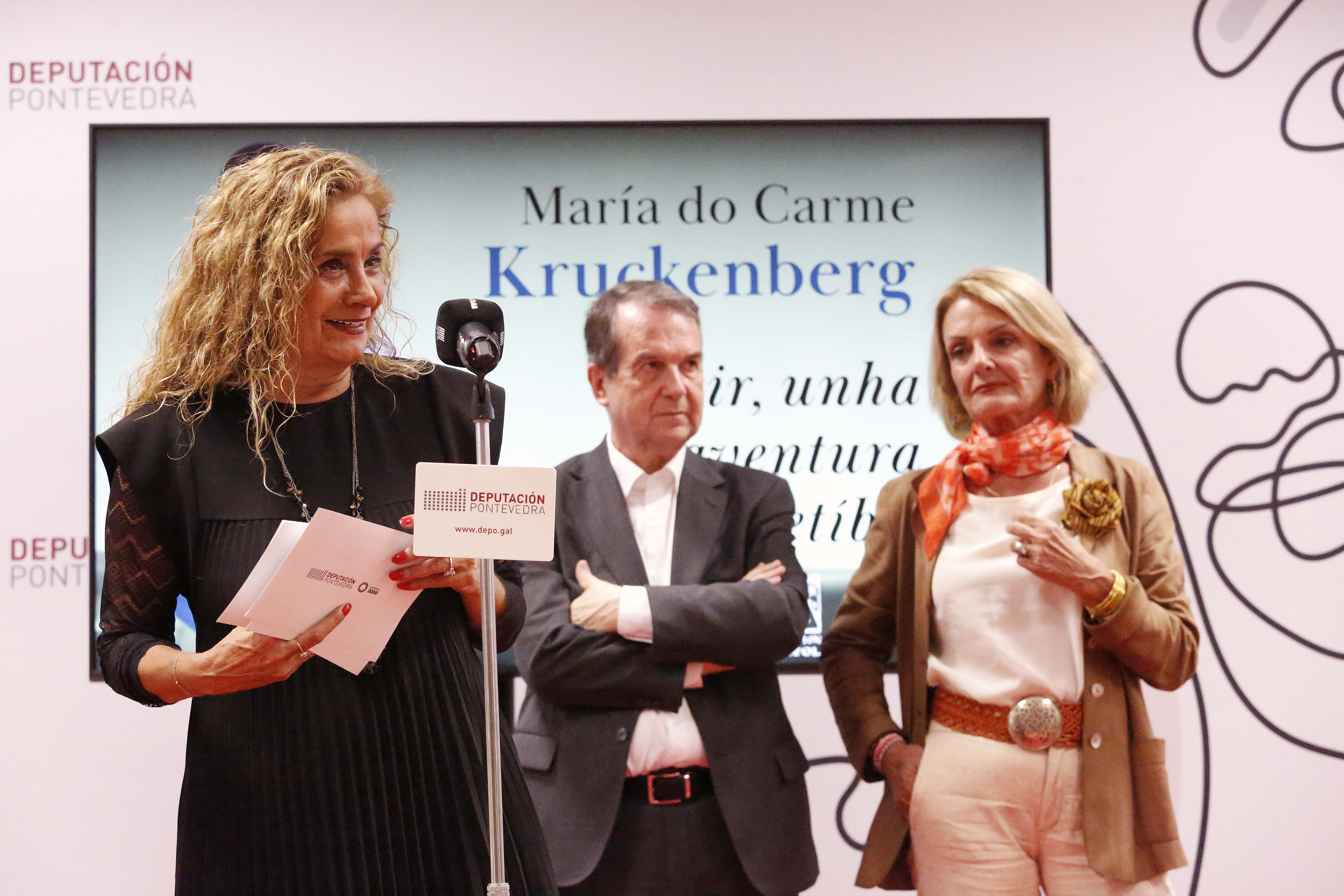 Escoitando a propia voz de María do Carme Kruckenberg sobre o son dun saxofón de mans doutra muller, a música Blanca Represas, arrancou esta tarde na sede da Deputación en Vigo a inauguración da mostra “Vivir, unha aventura irrepetíbel”, coa que a Fundación Penzol e a institución provincial queren honrar a figura e traxectoria dunha das escritoras de posguerra e intelectuais máis salientables do século XX, que, como destacaron todas as persoas que falaron “Vigo foi a súa razón de ser”. Nun acto de emocións e afectos, máis dun centenar de persoas do tecido social e cultural de toda Galicia encheron a Sala Rosalía, encabezadas polo presidente da Real Academia Galega, Víctor Freixanes, e acompañaron á presidenta Carmela Silva, ao alcalde Abel Caballero, ao presidente da Fundación Penzol, Manuel Puga, e á comisaria da mostra, Mercedes Queixas, arroupando á filla da escritora, Cristina Pusone Kruckenberg, na emotiva xornada inaugural da exposición que pode ser visitada ata o 10 de novembro.