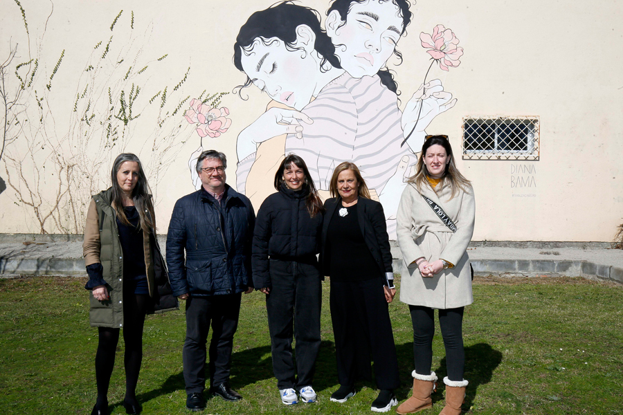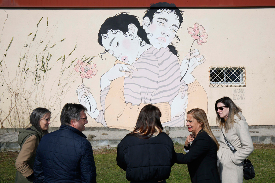 A imaxe dun reconfortante abrazo entre dúas mulleres conforma o mural que a artista Diana Bama vén de pintar nunha das fachadas do Pavillón do Centro Príncipe Felipe, como nova acción artística do programa da Deputación de igualdade e loita contra as violencias machistas “Mulleres en Acción. Violencia Zero”. “O abrazo”, que así se titula a peza, simboliza deste xeito a sororidade e o apoio mutuo entre as mulleres e foi enxalzada pola presidenta provincial, Carmela Silva, durante a súa visita ao centro, na que puido coñecer os detalles da obra da man da súa creadora.
