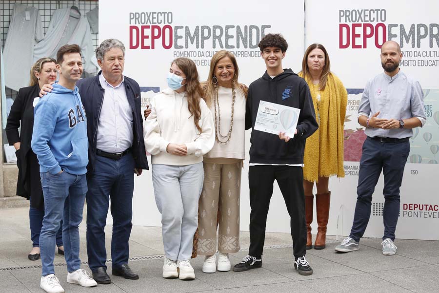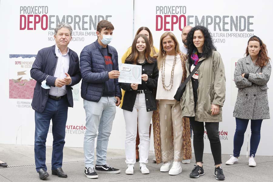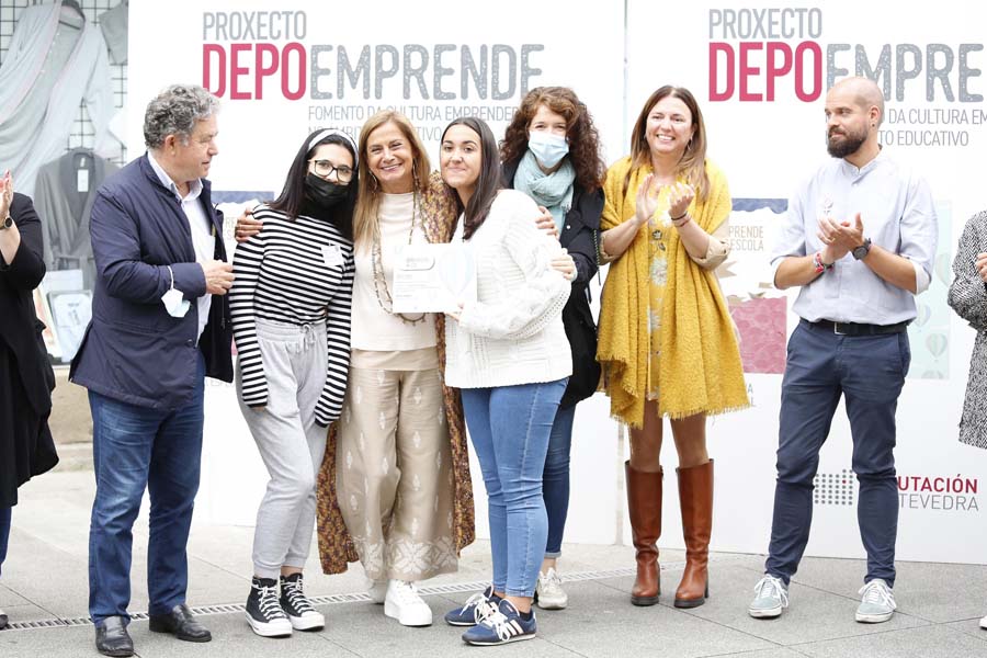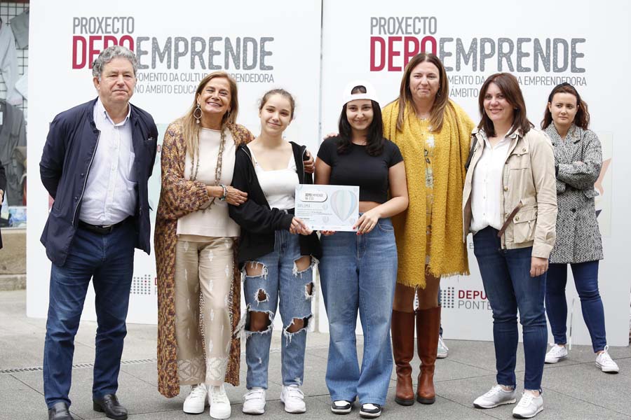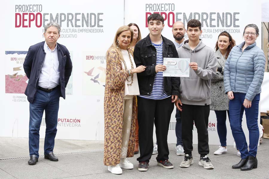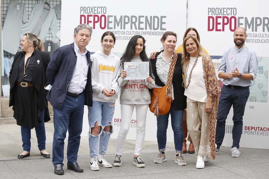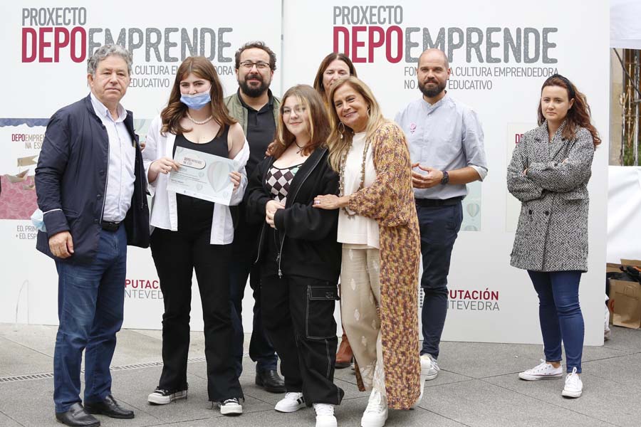 A zona exterior da Praza de Abastos de Pontevedra viviu unha xornada especial da man do programa da Deputación “DepoEMPRENDE na ESO”, que levou a case 140 escolares e 13 docentes de 7 centros educativos de Moaña, Pontevedra, Vilaboa, Cangas, Redondela, Gondomar e Tui a instalar postos de venta cos que puxeron o broche de ouro ao programa provincial de emprendemento. Neles ofreceron produtos ecolóxicos e artesáns cuxos beneficios estiveron destinados a distintas ONG da provincia centradas na loita contra o cancro, as persoas con diversidade funcional, a consecución os dereitos das nenas e nenos ou protectoras animais. Entre as persoas que se achegaron a este mercado solidario e entregaron ao alumnado os diplomas acreditativos da súa participación, estiveron a presidenta provincial, Carmela Silva; o alcalde de Pontevedra, Miguel Anxo Fernández Lores; a deputada Raquel Giráldez; a concelleira Yoya Blanco; o concelleiro Iván Puentes e representantes do sector comercial.
