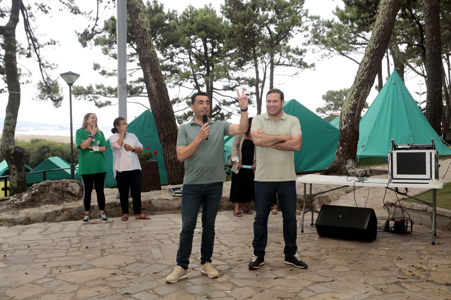 O presidente da Deputación de Pontevedra, Luis López, e o deputado de Xuventude, Jorge Cubela, visitaron esta mañá no Grove o Centro Vacacional da Lanzada, onde preto de 140 nenos e nenos están a pasar esta semana no marco dos campamentos de verán do programa “Depo Aventura”. O presidente provincial saudou os cativos no anfiteatro do complexo, “queriamos que nos derades envexa porque quen nos dera estar aquí a nós!”, e salientou que o deputado Jorge Cubela foi usuario dos campamentos na súa infancia “e ata se lembra da tenda de campaña na que estaba”.