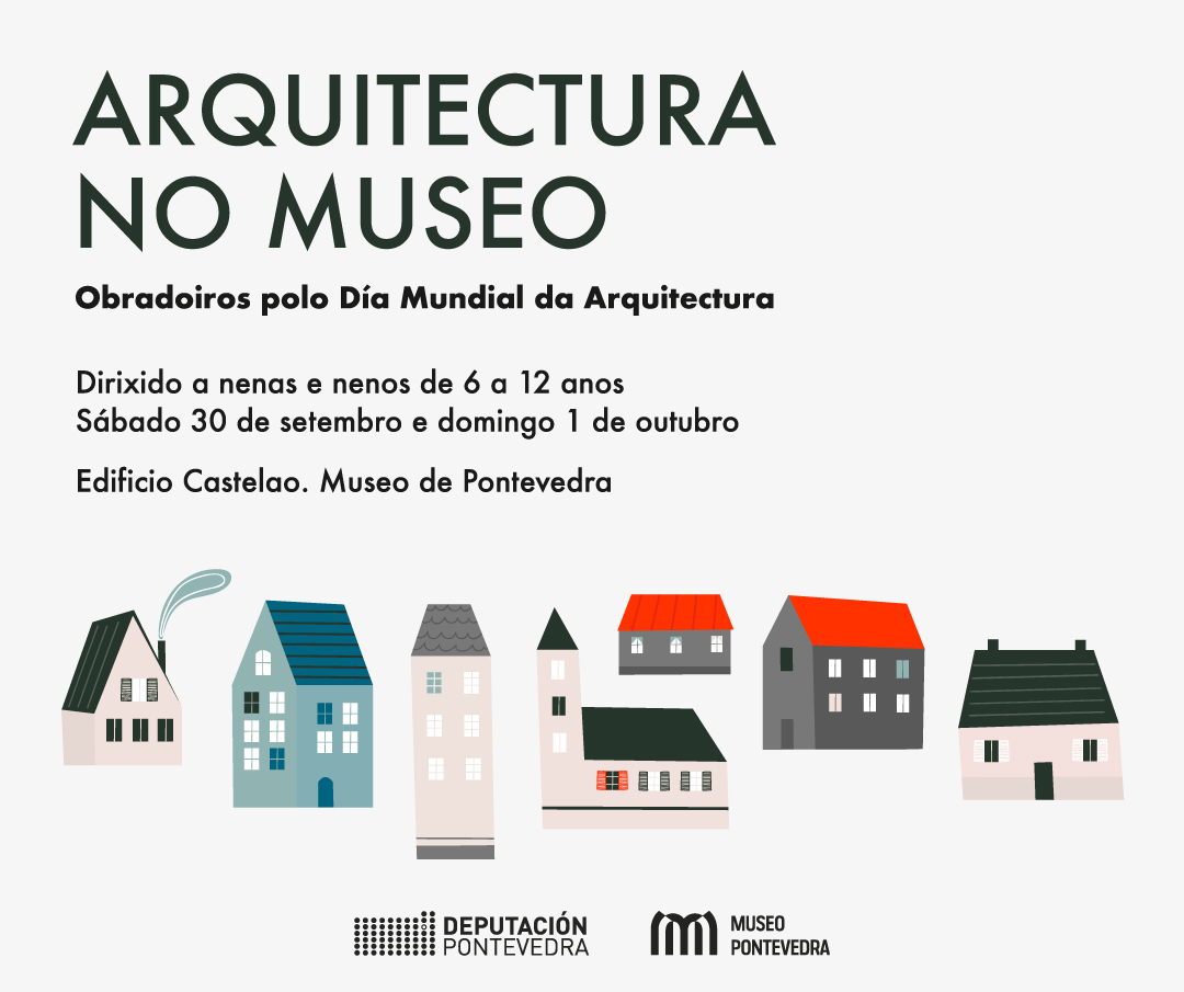 O Museo de Pontevedraorganiza catro obradoiros polo Día Mundial da Arquitectura, que se celebra cada ano o primeiro luns de outubro. As actividades, dirixidas a nenas e nenos de 6 a 12 anos de idade, terán lugar o sábado 30 de setembro e o domingo 1 de outubro pola mañá. Terán unha duración de hora e media e serán obradoiros independentes. A inscrición pode facerse a través de info@tallerabierto.gal.