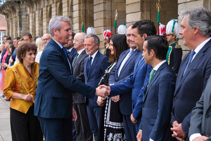 O presidente da Deputación de Pontevedra, Luis López, e a vicepresidenta provincial Marta Fernández-Tapias asistiron na capital de Galicia á Ofrenda Nacional ao Apóstolo Santiago na que exerceu como Delegado Rexio o presidente da Xunta de Galicia, Alfonso Rueda. O acto comezou coa recepción do Delegado Rexio na Praza de Obradoiro á que lle seguiu a cerimonia relixiosa na Catedral de Santiago, na que tivo lugar a ofrenda.