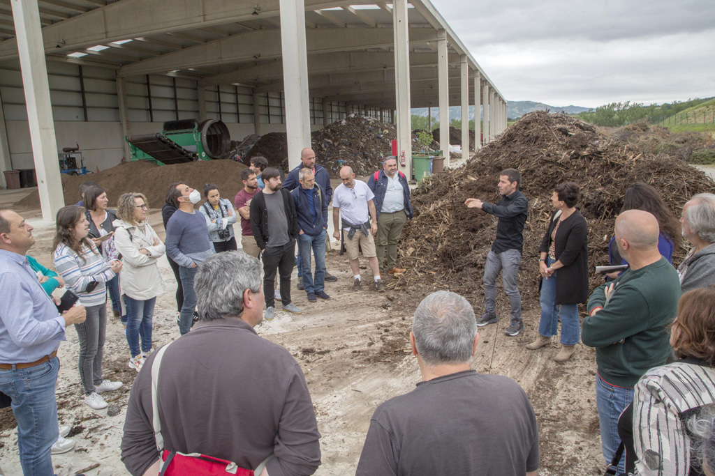 A segunda parada do día foi á Mancomunidade de Sakana, á planta de compostaxe de Arbizu. Na comarca hai 20.000 habitantes en 15 concellos, estando a planta no medio do val e preparada para tratar entre 1.200 e 1.300 toneladas de orgánico, que chega despois dunha recollida principalmente PaP e tamén por 5º colector nalgúns casos, así como outro sistema máis de recollida. O alcalde de Urdiain e presidente da manconumindade Daviz Oroz subiñou que nestes momentos a mancomunidade acadou o máximo nivel de separación en toda Navarra obtendo compost da maior calidade na planta de compostaxe, incluso útil para agricultura ecolóxica, que despois se reparte gratuitamente entre a veciñanza.