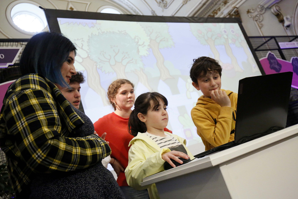 A presentación do videoxogo correu a cargo de Marina Amores e Isi Cano. Explicaron que a súa mecánica inspírase nos hidden games, é dicir, parte de obxectos escondidos en cada pantalla que hai que identificar e que neste caso están relacionados cos campos de traballo das protagonistas. Así, en cada unha das pantallas (tres por nivel), as crianzas deben ir descubrindo e pinchando os elementos propostos e, ao conseguir desbloquealos, chegan a cada un dos 8 ODS incluídos e ás mulleres asociadas e este. Carmela e Jaime, do CEIP Mourente, e Alejandra e Augusto, do IES Valle Inclán, foron quen xunto a Isi Cano puideron estrear esta proposta lúdica que gamifica de xeito resumido a información das biografías, coas ilustracións da propia Cano. Como sinalou Amores, unha vez desbloqueados todos os niveis, “atópase a constelación de todas estas estrelas”. Ambas defenderon a necesidade de utilizar este sistema lúdico para o aprendizaxe e Cano tamén incidiu na brecha de xénero que ten sufrido e aínda persiste no campo da creación de videoxogos, agradecendo á Deputación o seu apoio: “é o primeiro videoxogo que teño publicado e acreditado co meu nome”.