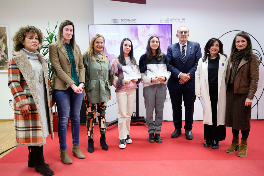 A terceira edición dos Premios GirlGeekCovid, a iniciativa enmarcada na Cátedra de Feminismos 4.0 que promoven a Deputación de Pontevedra e a Universidade de Vigo, entregou hoxe, na sede da institución en Vigo, coa presenza da presidenta provincial, Carmela Silva, e do Reitor, Manuel Reigosa, os galardóns que recoñecen os mellores expedientes femininos nas carreiras de ciencias e enxeñaría, áreas nas que as mulleres seguen representando unha porcentaxe menor respecto aos homes que cursan estas especialidades. As galardoadas co primeiro premio en ciencias e enxeñaría foron Esther Lago Sampedro e Henar Mariño Bodelón, respectivamente, e no caso dos accésit Iliana Durán Alonso obtivo o correspondente a ciencias e Laura Núñez Álvarez o de enxeñaría.