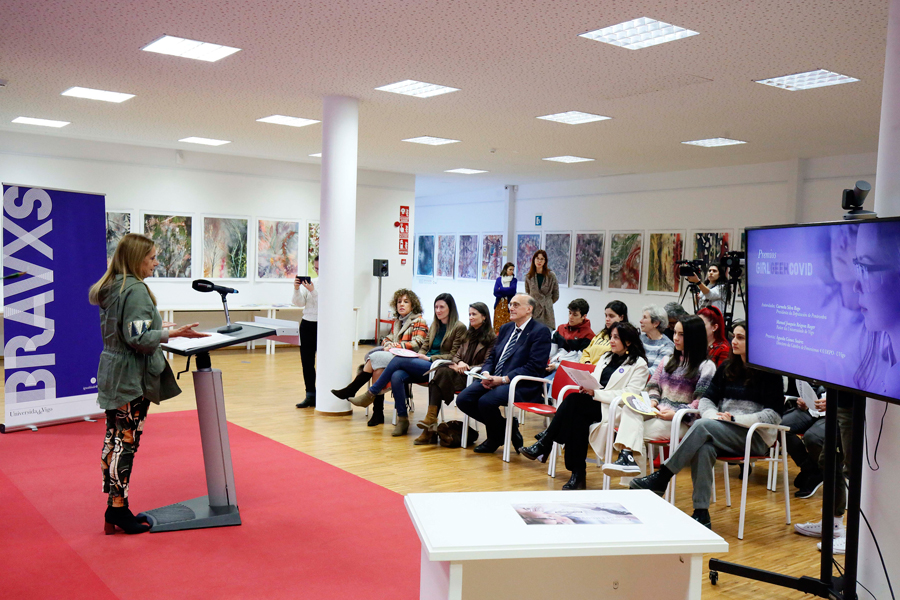 Os galardóns, que naceron para incentivar, apoiar e fomentar os estudos STEM entre as mulleres e están impulsados pola Deputación e a UVigo, mudarán de nome na súa próxima edición para deixar atrás o termo “covid” que fai referencia a unha etapa afortunadamente superada. A presidenta Carmela Silva foi a encargada de dar a coñecer a nova nomenclatura dos galardóns que o vindeiro curso pasarán a denominarse “Girl Geek Power”.