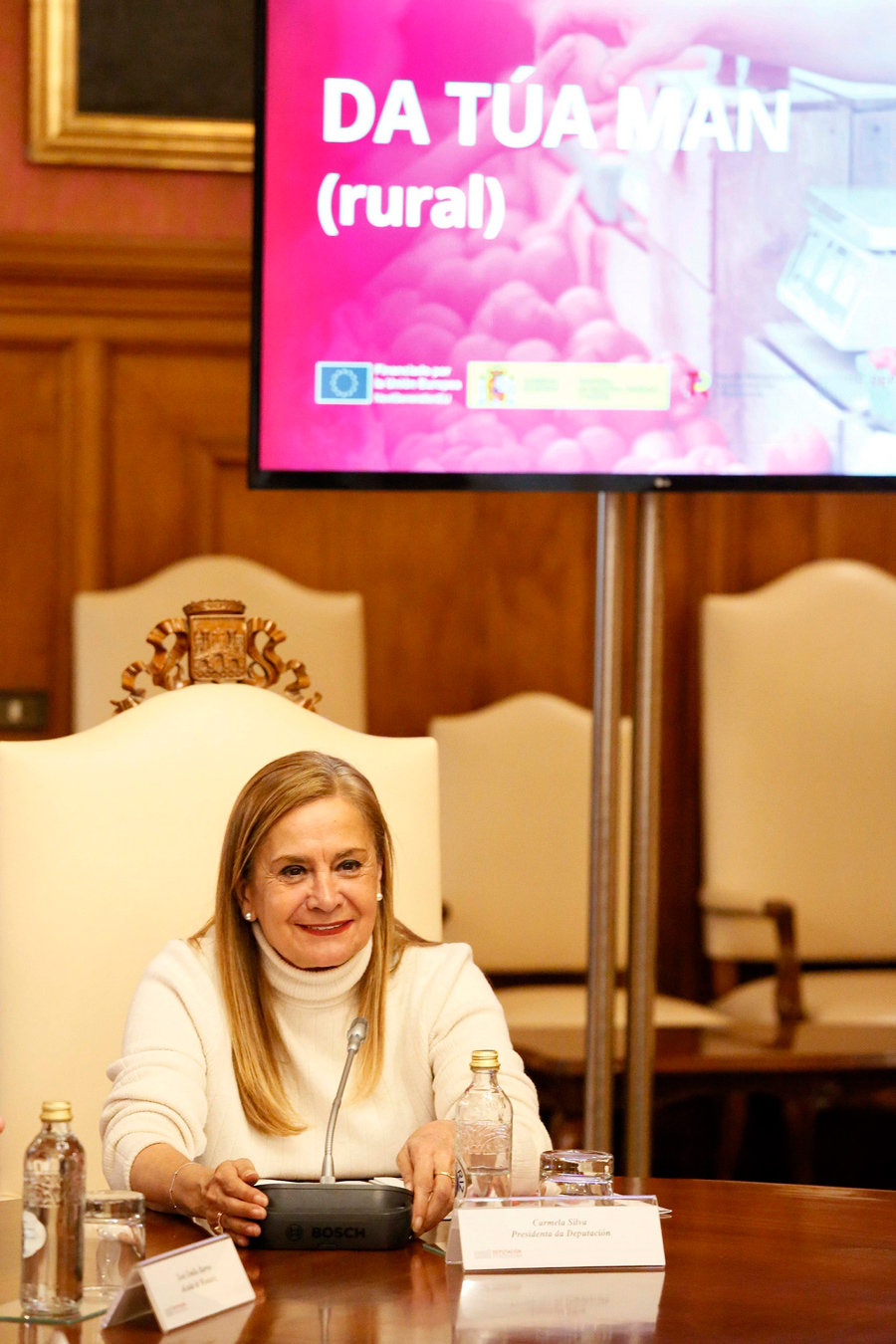 A finalidade de “Da túa man rural” é a de visibilizar e modernizar o pequeno comercio local, “fomentando o comercio de proximidade e traballando para poder adaptalo ás novas demandas e hábitos de consumo”, en concellos de menos de 5.000 habitantes caracterizados por unha importante dispersión xeográfica, poboación envellecida e perda de poboación, falta de substitución xeracional, altas taxas de paro feminino, dificultade para a adaptación ás novas tecnoloxías e de medidas de economía circular, pero tamén con recursos turísticos estratéxicos, como o Camiño de Santiago ou patrimonio BIC. “Conseguirémolo a través da dixitalización, a economía circular ou o desenvolvemento de plataformas”, explicou a presidenta quen detallou que “a partir do 1 de marzo comezaremos a contactar cos concellos participantes para decidir onde desenvolver as accións en cada territorio e avanzar no seu deseño”. Carmela Silva lembrou que se trata do terceiro proxecto que a institución provincial desenvolve ao abeiro das axudas da Secretaría de Estado do Comercio para apoiar a actividade comercial no horizonte 2023-2024 e que están a permitir implementar accións de fortalecemento de comercio e mellora das contornas comerciais nun total de 31 municipios.