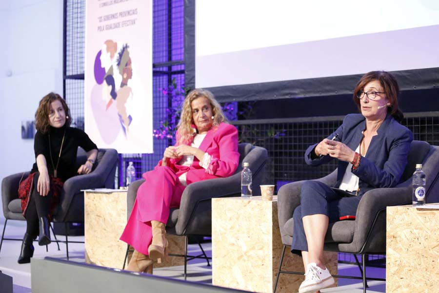 Carmela Silva remarcou que na Deputación de Pontevedra a igualdade é “a nosa grande prioridade”. Explicou que “todo” na institución provincial pontevedresa se realiza “con gafas violetas” porque “máis da metade do mundo somos nós, as mulleres, e sufrimos unha grande discriminación”. Detallou que as políticas que lidera discriminan positivamente ás mulleres, ás que sitúa sempre “no espazo central”, e que o servizo de Igualdade da Deputación de Pontevedra “é o que máis medra, cun aumento do 18% dos recursos destinados a esta área”. Pola súa banda Cristina Valadés, deputada de Igualdade e Xuventude da Deputación de Badaxoz, detallou actividades pioneiras que desenvolven como o “Proxecto Mariposas”, enfocado ás fillas e fillos de mulleres vítimas da violencia de xénero que este ano está a atender a 42 menores; os premios de igualdade ou o programa “Sen fenda” enfocado ao emprendemento das mulleres. Finalmente a vicepresidenta da Deputación de Toledo, Ana María Gómez, explicou que teñen en marcha unha estratexia de igualdade de xénero, que vai xa pola súa segunda edición, centrada na transversalidade da igualdade e na loita contra as violencias machistas. No marco da estratexia, detallou, parten todos os programas que lideran entre os que destacou o de axentes de igualdade que ten desenvolvido máis de 4.000 actividades por toda a provincia das que se beneficiaron 67.000 persoas.