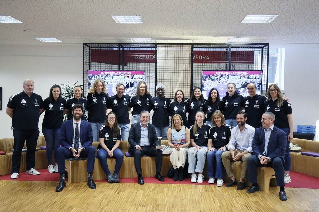 O deporte da provincia de Pontevedra volve estar de parabéns. A presidenta da Deputación de Pontevedra, Carmela Silva, recibiu hoxe na sede provincial en Vigo o equipo feminino de baloncesto Celta Zorka Recalvi, que vén de facer historia ao ascender á liga Feminina 1 (LF Endesa) tras derrotar o valenciano Cordà de Paterna Nou Bàsquet no último encontro da Final Four que se xogou o pasado domingo no polideportivo de Navia. Xunto coa presidenta da Deputación estiveron presentes no encontro as xogadoras do equipo, o seu presidente, Carlos Álvarez, a adestradora, Cristina Cantero, e o deputado de Deportes, Gorka Gómez, amais de parte da directiva e resto do equipo técnico. A presidenta agasallou o club coas camelias brancas (símbolo das sufraxistas e, ademais, flor das Rías Baixas) elaboradas pola Premio Nacional de Artesanía Ana Tenorio, e o club entregou a Carmela Silva unha camiseta do equipo, co seu nome no dorso e o número 14, nun guiño inequívoco ao número que durante anos levou o seu fillo Iago Falque nos clubs nos que xogou.