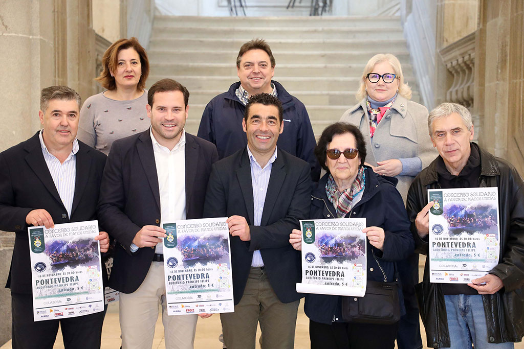 O presidente da Deputación de Pontevedra, Luis López, xunto co deputado de Cultura, Xuventude e Reto Demográfico da Deputación de Pontevedra, Jorge Cubela, recibiu este martes no Pazo provincial a Banda de Gaitas e Baile Os Coribantes de Buchabade con motivo do recital solidario que celebran este sábado 16 de novembro ás 20:00 horas no auditorio do Centro Príncipe Felipe, propiedade da institución provincial. O presidente e o deputado agradeceron a formación polo seu compromiso social e animou a toda a veciñanza da provincia a asistir. Ademais, lembraron que as entradas están á venda no local social do grupo, en Ponte Caldelas, na sede de Manos Unidas na cidade de Pontevedra e tamén na tenda Musical Pontevedra. Teñen un prezo de 5 euros (con opción a mercar unha fila cero no caso de non poder asistir) e o recadado irá a favor da ONG Manos Unidas.