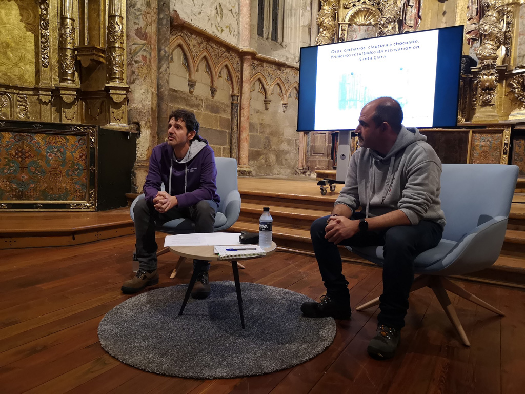 O convento de Santa Clara dá para falar moito. Esa foi a primeira conclusión á que chegaron hoxe as primeiras persoas relatoras do ciclo de charlas organizadas pola Deputación de Pontevedra para conmemorar a compra do recinto relixioso, os arqueólogos responsables das escavacións e do estudo histórico artístico, Rafael Rodríguez e Israel Picón. Ambos deron unha visión xeral da escavación e destacaron que foi necesario ampliar substancialmente o proxecto de intervención inicial dada a cantidade de material atopado e que achegaba información sobre a vida no convento durante os 700 anos que estivo pechado ao público.