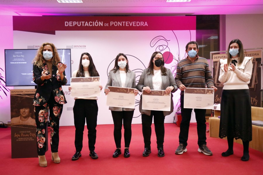 No que respecta aos Traballos Fin de Grao, con dous premios de 1.000 euros, as galardoadas foron Nuria Ferreiro (Ponte Caldelas) por “Convite ao avecer”, un traballo de investigación e creación que se vertebra a través da vinculación ao territorio, do agarimo á cultura popular e dos vencellos persoais. Nesta obra a autora establece unha relación directa entre a etnografía, a antropoloxía, a arte contemporánea e a etnomedicina, integrando a perspectiva de xénero. Percórrense conceptos como o de menciñeira ou o de albeite desde diversas perspectivas: a sociolóxica, a feminista ou a literaria. Carla Souto (Caldas) foi premiada por “A perspectiva de xénero nas aulas de educación primaria cun enfoque baseado en proxectos”, traballo no que deseña proxectos que fan visibles as contribucións femininas coas que o alumnado reflexiona sobre as interpretacións deformadas de sucesos do pasado ao non empregar a perspectiva de xénero. Amais, promoven a participación igualitaria do alumnado e asunción de roles non estereotipados.